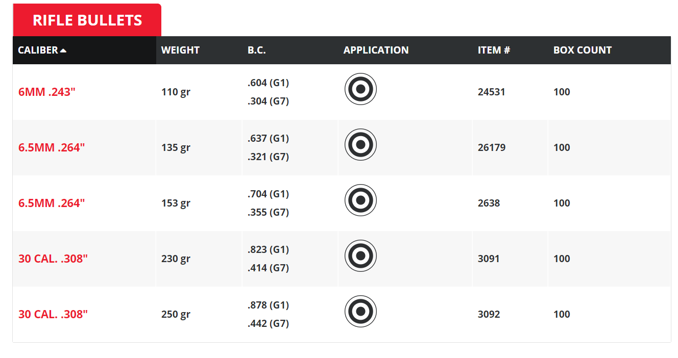 There really isn’t enough of a BC advantage with the 6.5mm versions if you compare them to the ELD-M to make them worth spending twice the money on them. They should take notes from ALCO and sharpen their tips, increase the Al tip size, and re-design their boat tail. The 30 cals are where it’s at.