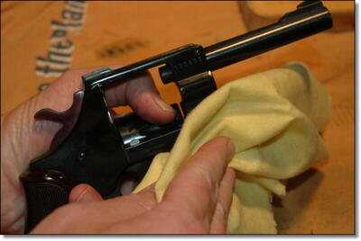| Gun cleaning can be a pleasure or chore, depending on how you look at it. The tools and cleaners available today are staggering, but leave a lot of choices for the consumer. Blued guns like this look beautiful, but they need a little more TLC than some of the more modern finishes. The area where aftermarket sights meet the slide can be an area where rust sneaks up on you. Q-tips can really get into this corner and get the crud out. Revolvers, while less maintenance intensive with such items as springs, etc., still need periodic maintenance and good cleaning when you shoot them. I use Q-tips or other cotton swabs to reach a lot of hard to reach places. They absorb dirt/grime nicely. |