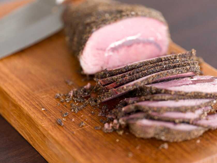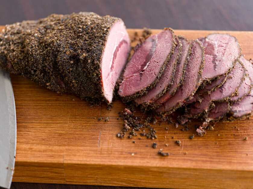 Serve the meat warm or cooled. Make a tasty sandwich, add it to a hamburger, or serve it with cheese and crackers. Smoked elk pastrami is an awesome way to use tough meat that would otherwise be headed for the grinder.