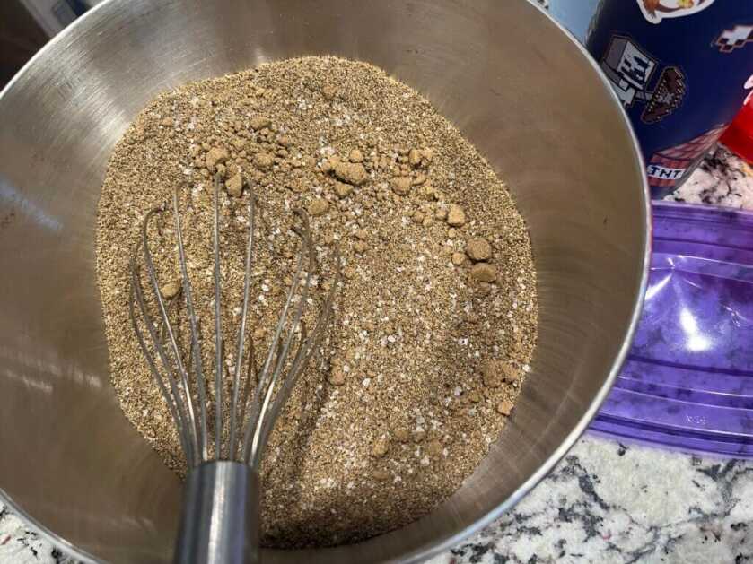 Combine all the rub ingredients. Place the meat on a tray and pat the rub onto the meat so it is completely covered.