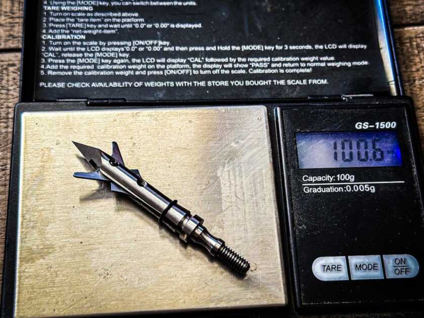 The 1.75″ is available in 100- and 125-grain models. I’m a 100-grain guy, so this was the grain weight used for testing. The average weight of three separate Titanium 1.75″ heads on a Hornady GS-1500 scale was 100.6 grains.
