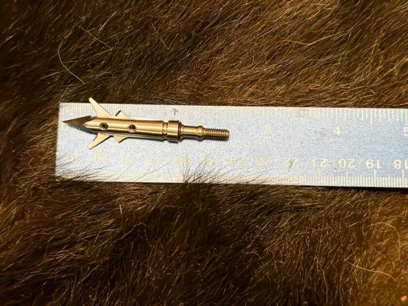 I also expect entry wounds to measure more prominent than 1.75 inches. I have shot a pile of animals with the 1.5″, and typically, the entrance wounds measure around 1.75 inches. This is due to SEVR’s Stretch Cut blade effect, which stretches the hide while cutting to create a large entrance wound from which blood can pour.