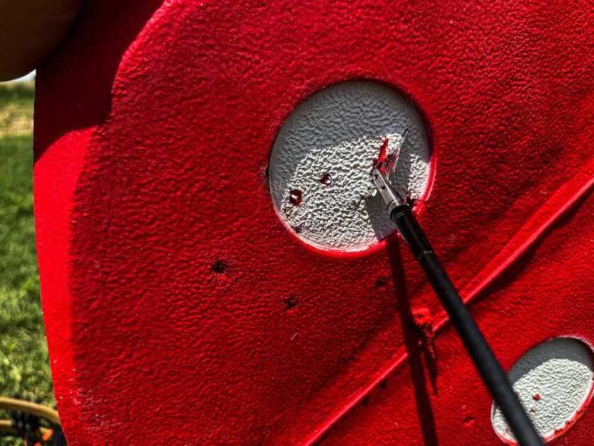 My target has stood up to hundreds of shots from field points, mechanical heads slung from high-speed vertical bows, and Wicked Ridge’s new-for-2023 Flatline 460. And despite being left out in torrential downpours, the 100 percent waterproof target shows no signs of breaking down.