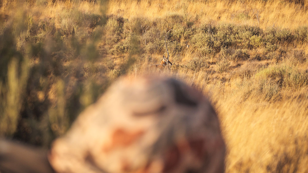 That was Friday, and my hunt opened on Monday. Nick and I started hunting at sunrise. We immediately spotted five bucks in a draw 600 yards away. They were walking away from us, though, and there was no way to make a play on them. We also saw two mule deer does grazing and a young buck. Game was everywhere.