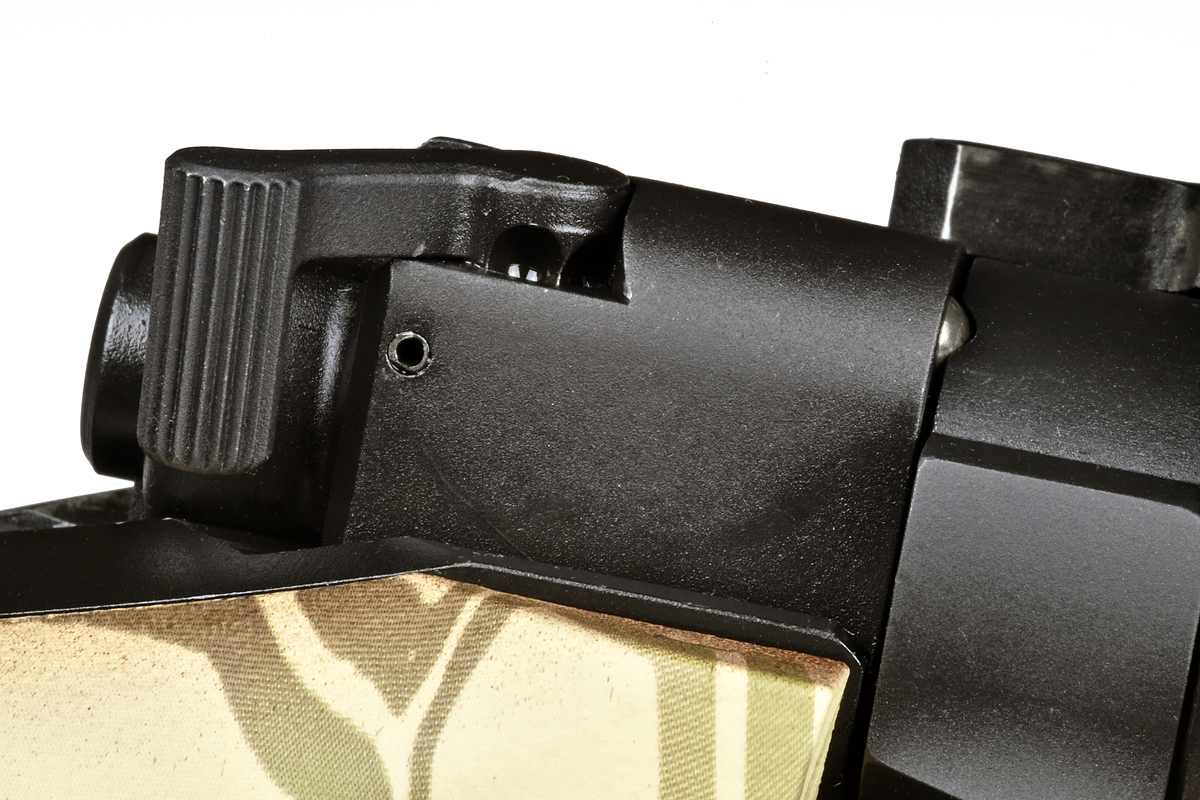 The frame and feeding lips of the magazine are made of aluminum, while the bottom and follower are made of polymer. A hinged, spring-loaded magazine release tab sits at the front of the magazine and is protected against accidental operation within a recess in the bottom of the stock. You have to insert the rear of the magazine into the magazine well first, and then lever the front end up until it locks into place. The magazine will not insert into place if your reverse that order. It takes only a moment to get used to the procedure, and I didn’t find it to be an issue.