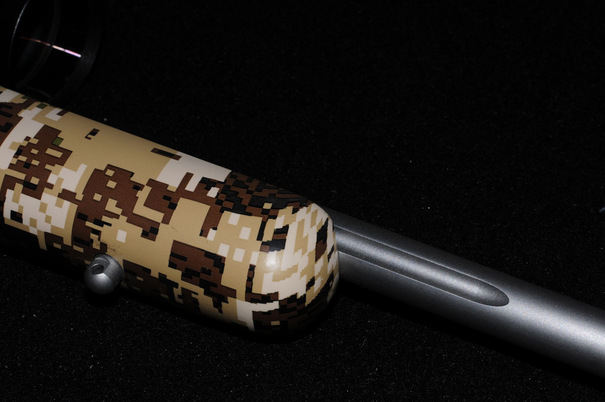 My rifle features a 24-inch stainless fluted barrel with a 1-in-9 rate of twist. It’s factory threaded for a muzzle brake or suppressor and comes with a thread protector installed. The action is stainless and boasts a 3-position, model 70 type wing safety, a Mauser controlled-round-feed claw extractor, and a magazine capacity of four. A small push-button lever tight to the rearward left side of the action releases the bolt. There is no bottom metal, congruent with the minimalist mountain-rifle platform. The trigger is adjustable and reasonably crisp. Mine averaged right at four pounds with my Lyman trigger gauge. The stock is streamlined and ergonomic, boasts pillar bedding, and sports a cushy 1-inch Pachmayr Decelerator recoil pad. The stock material is reinforced carbon fiber, wrapped in an eye-catching “Subalpine” camouflage pattern. Kimber’s soft-touch finish renders a comfortable, non-slip finish.