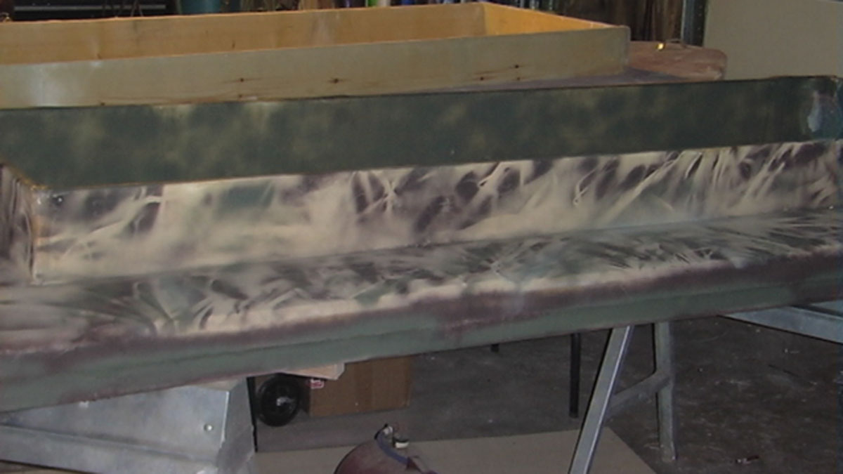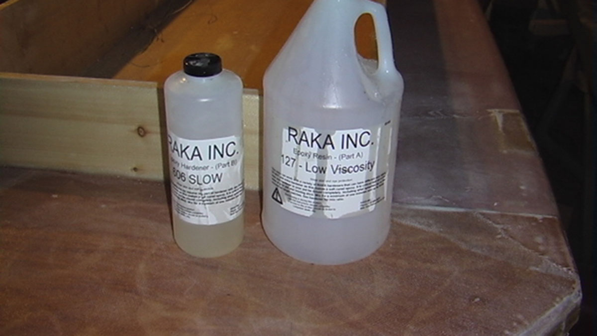 This process uses fiberglass cloth but is really a two-part epoxy that is easier to work with. I recommend a thin set epoxy with a slow curing hardener. Raka is a great place to get both the 7-ounce glass cloth and the epoxy. They have great prices and ship right away. Start with the bottom and layout your cloth. Have a sharp pair of scissors ready but get some cheap ones, as they tend to get covered in epoxy. Rubber gloves are a must.