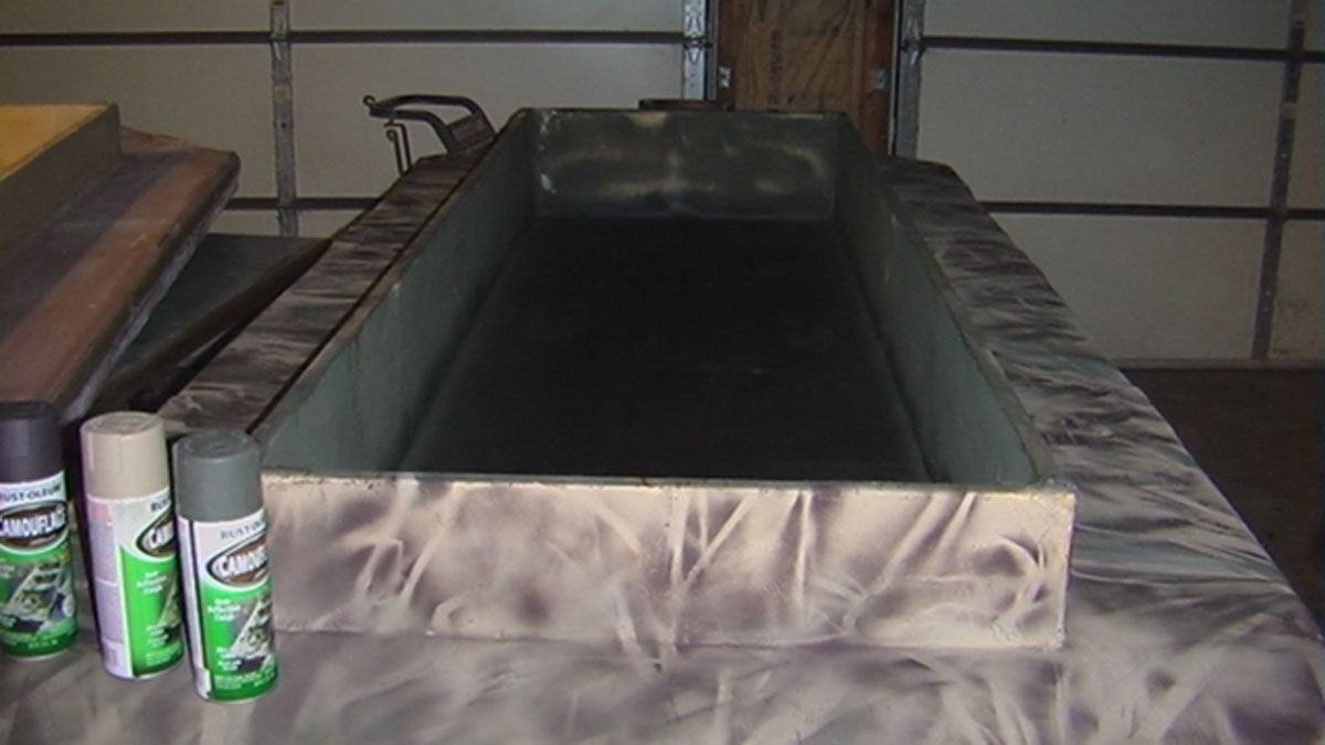Painting is easy so just grab some foliage and use that as a stencil. Layer in different colors and the end product will keep you dry, and haul a ton of stuff into the marsh. As the boat is used, you can apply patches to fix any tears. I have used this type of boat on ice, drug it across gravel and pretty much beat it up every use. I guarantee this will stand up to your abuse for several years of use. Simple covering with grass mats or other wetland plants will make your concealment excellent.