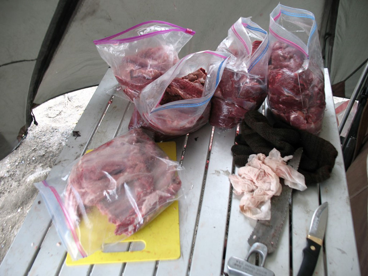 When a hunter is going to be doing the bulk of the labor, such as backpacking the meat out, it pays to leave everything at the kill site that won’t be put to use or needs to be legally carried out. With a little practice, a carcass can be boned out and cleaned up in no time at all, shaving valuable pounds off of your pack. Some hunting districts don’t allow boning meat in the field so be sure to be familiar with your state’s or area’s regulations.