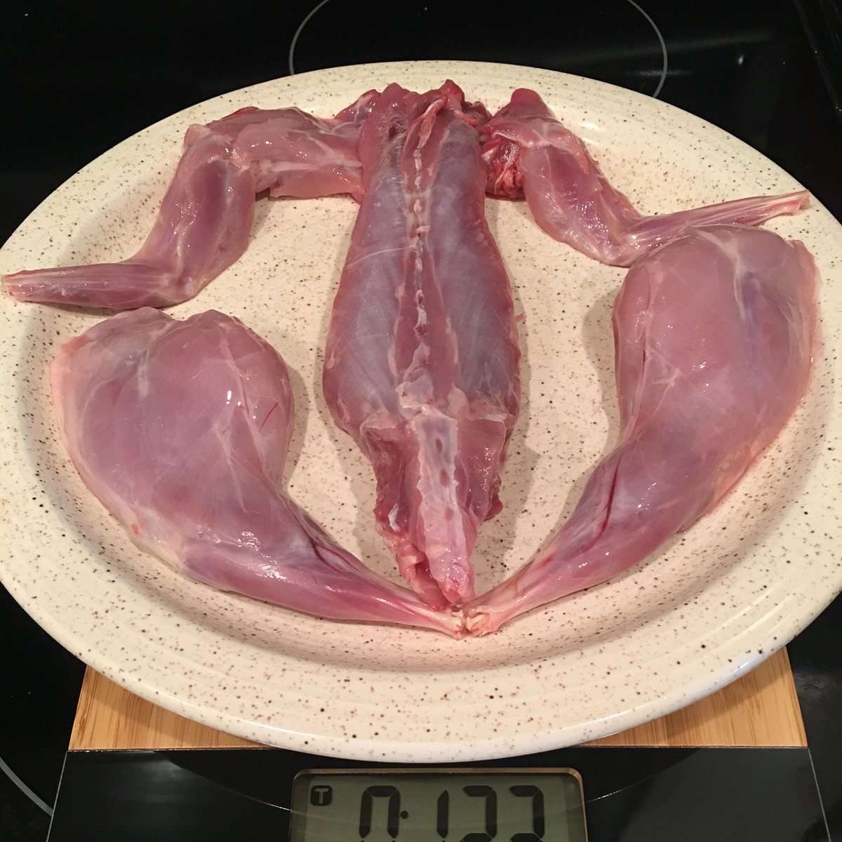 Now you’ve got four quarters and the saddle (backstraps). Try a brine to tenderize and try the above-linked rabbit stew recipe.