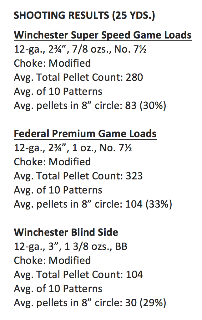 For testing, I took the gun out to my brother’s farm and shot patterns from a Champion shooting rest at 25 yards and then shot from the shoulder at both paper targets and hand-thrown clays. As noted, the gun was nimble to point and light in swinging. Switching between both field loads and waterfowl loads, recoil was still quite manageable.