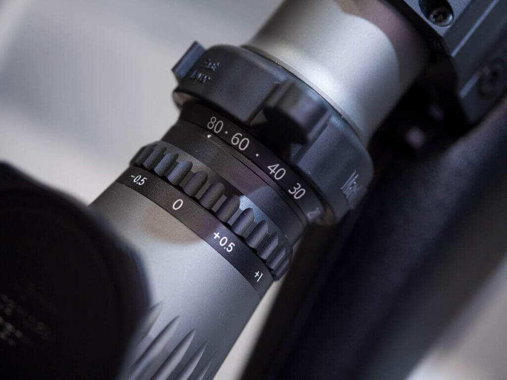 The 8-80×56 Majesta scope includes a fancy thing called Super ED glass. Extra-low Dispersion glass is used in all kinds of optics to reduce chromatic aberration — those annoying color fringes you often see in high-contrast situations. March’s Super ED glass does an even better job of making a clear view. They boast the highest percentage of fluorite in their glass of any riflescope.