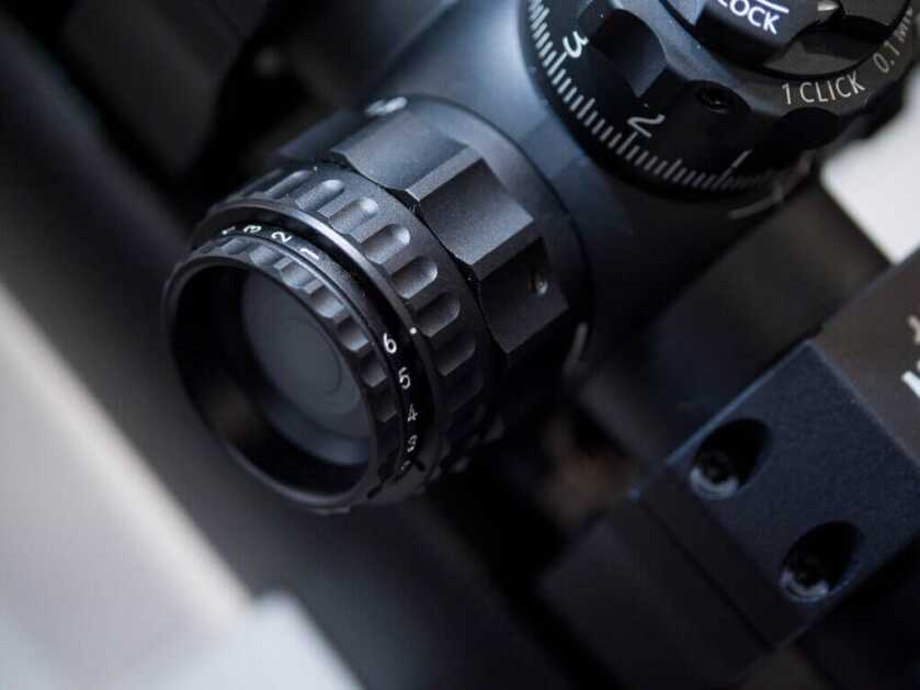 The 1-10×24 scope features a useful reticle style, especially on a 10x zoom scope like this. It has an illuminated dot in the center (variable brightness) and crosshairs pointing to it. These are both on the second focal plane and when you increase the magnification the size of the dot and the crosshairs don’t change.