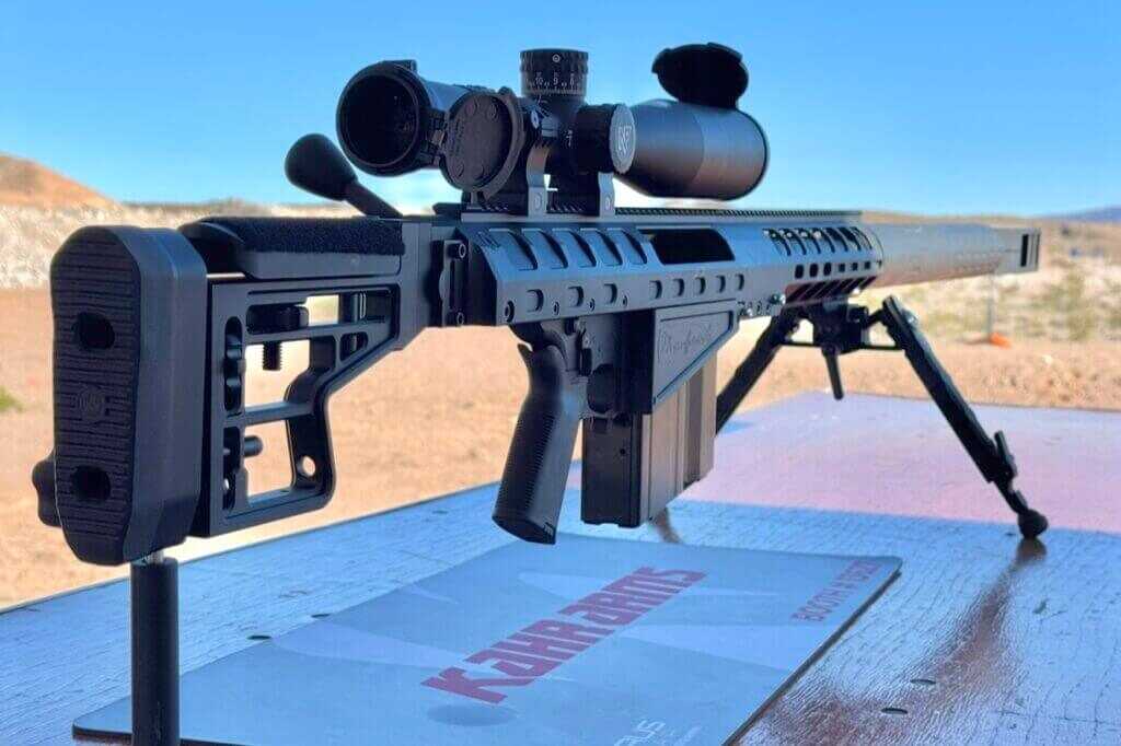 The rifle also uses a multi-caliber barrel system. Shooters can swap between .50 BMG and .460 Barrett barrels, adding flexibility without buying a second rifle. The bolt carrier’s compact design helps keep overall weight down compared to traditional .50-caliber actions.