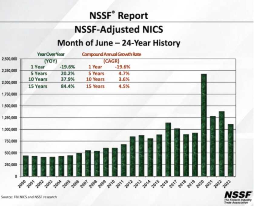 This decrease in figures isn’t confined to June alone. The second quarter of 2023 also reported a reduced NSSF-adjusted NICS figure of 3,654,134, signifying a 6.7% decrease compared to the second quarter 2022 figure of 3,916,986.