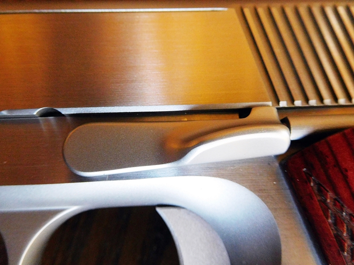 Serrations on the top of the safety give you positive purchase when taking the safety off. Most other 1911s provide this too but they’re not all as crisp and positive as the NightHawk safety.