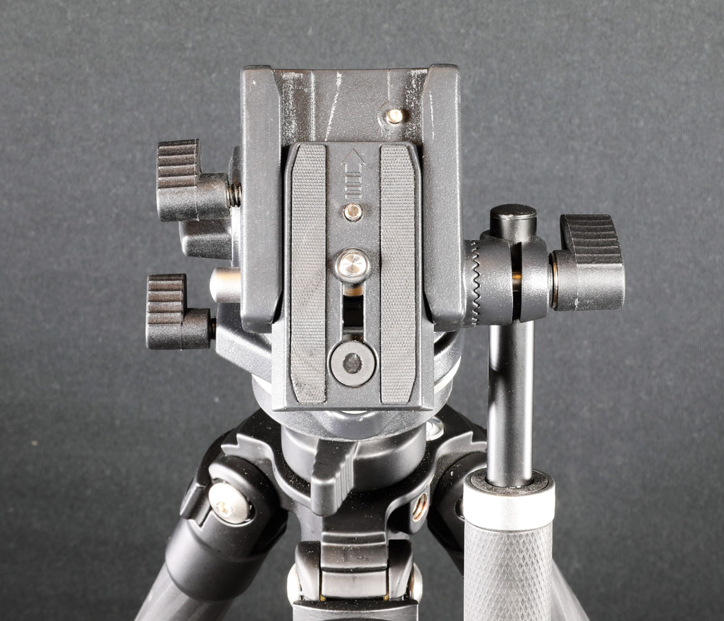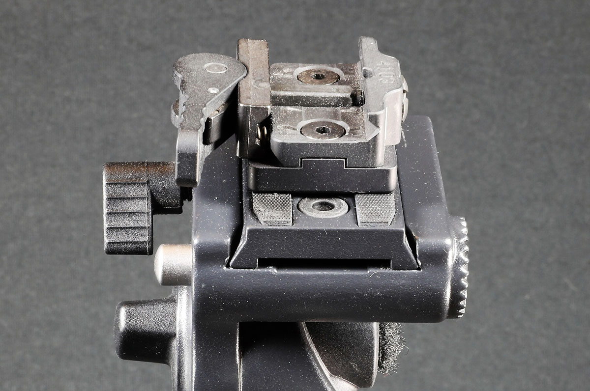 The head on the tripod comes with a handle to assist with panning and tilting. The handle is useful with a spotting scope, but I removed it because with the rifle mounted it is not needed. It is easily reattached. There is also a small ring on the side of the head that I removed because it gave an ever so slight rattle and I wanted complete stealth. Presumably, this ring is for mounting a sling to carry the tripod or something similar. Other adjustments I made were to remove the stickers and put a piece of black Velcro over the shiny Leupold emblem. I would have preferred that the main bolts were painted flat black, but that didn’t cause any problems and it can be fixed later. The top of the head has a plate with a 1/4×20 threaded stud to mount binoculars, rangefinders, or spotting scopes. The plate slides into a dovetail in the head and is then tightened down with a lever. This dovetail mount is simple, quiet, and secure. Overall the adjustment knobs for tilt, rotation, etc. are well designed, compact, and functional. The entire unit is well made, with a high-quality fit and finish.