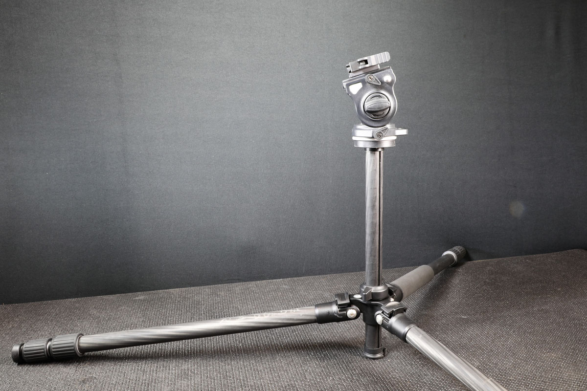On this trip, I hunted both day and night, and by dumb luck, there was only a sliver of a moon out. With intermittent cloud cover, the nights were nearly pitch black. Because of this, I stood to call coyotes at night and the tripod was just the right shooting platform for this method. In this position, the unit was very stable for being so lightweight. The tripod may also be used from a seated position, similar to how one would use shooting sticks or a high bipod. The leg shafts are where the carbon fiber is used, and the height adjustment was fast and silent – simply turn the rubberized knurled knobs on each leg, extend or compress, and twist again. Some tripods use a clamp for adjustment, these knobs are better. The kit comes with optional spike feet, but I used the included rubber feet with no issues.