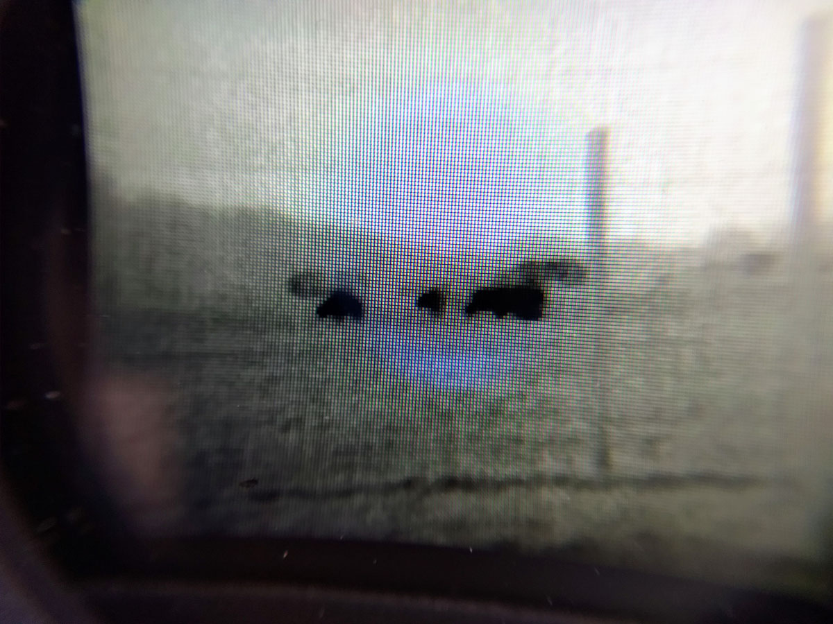 At 125 yards and at 3x magnification, four bison (two clumped together on right) seen through the LTO Tracker 2.