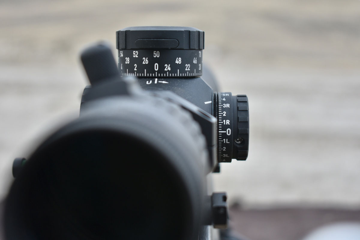 As can be seen, it is a bit difficult to tell what mark the windage index mark is actually on. However, with the ability to count clicks or use holdovers in the reticle, this is a small issue.