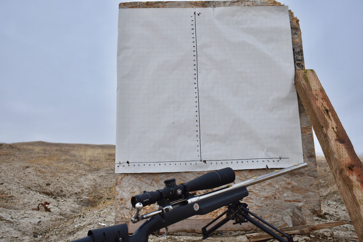 Like in all of the optics that I get the opportunity to review, I put the Mark 5HD through a tall target test in order to see what kind of accuracy the turrets tracked with. In this test, I draw up a target on some gridded paper (1” grid) which consists of an aim point at the bottom with a vertical line running in the Y-axis and a horizontal line running in the X-axis. These lines illustrate visually if the elevation and windage turrets track in purely the Y and X axis respectively after the target and scope have been leveled with gravity or a bubble level. In this test, it is imperative that the rifle used can put groups down range with the utmost precision in order to yield results that are as accurate as possible. For this purpose, I used my Savage target rifle with criterion barrel chambered in 308 Winchester. For Ammunition, I used Buffalo Bore Sniper 308 Win, slinging a 175-grain SMK.