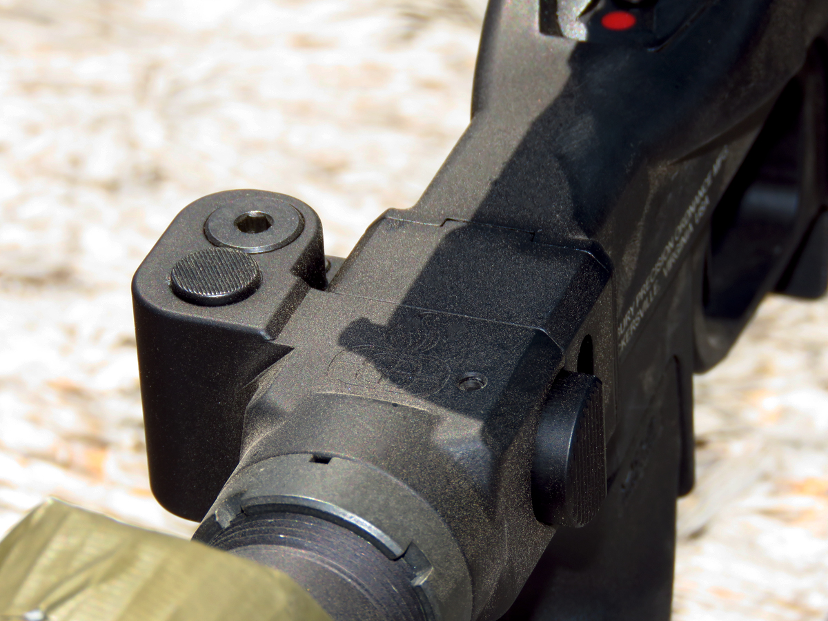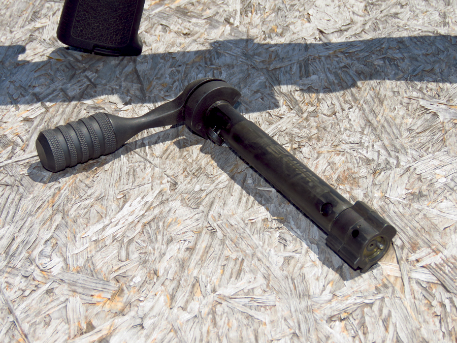 Not easily seen in the photo but certainly felt in the hand, the pistol grip angle is steeper than a standard AR-15 grip and very comfortable.