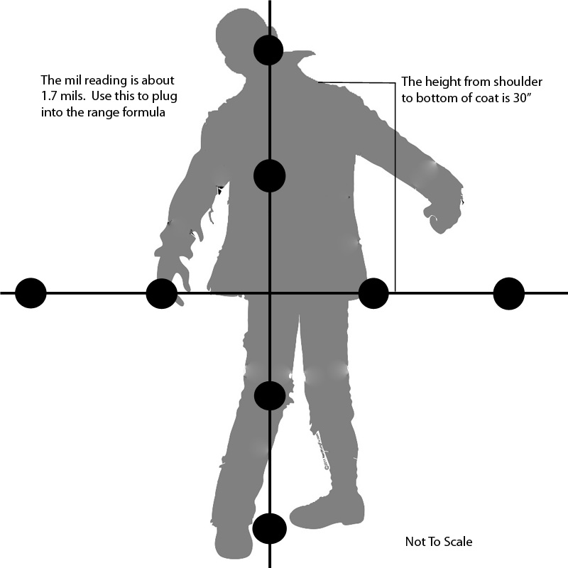 Using a mil-dot or other mil-based reticle to range a target isn’t really that different from using a ruler to measure something. There are some things that you need to be aware of though before you get started. The most important thing to know when using the reticle to range a target is the actual size of the target, preferably in inches. Let’s roll back to the movie 28 Weeks Later again and pretend the Army sniper had ranged the infected people before he actually started engaging them. Hypothetically he could’ve ranged nearby objects; however, pressed for time he went with average torso dimensions. Now, the infected aren’t zombies per se because they are not reanimated dead tissue, they are just regular folks that had a run of bad luck and had gone on an enraged killing spree. Luckily that means that hits to the torso and vital organs are still going to be effective at neutralizing them (and not requiring head shots as in the Romero-inspired zombie movies). Using the dimensions of an infected adult isn’t ideal because they can vary in size, which can throw off the chances for a precise range estimate. However, the infected are comparatively large targets so he could be a little off on his mil reading for a 20-inch shoulder width or 36-inch height from waist to top of head and still get a good hit. This is also why it helps to have more than one dimension to go off of so that you can use it to cross-reference the other mil reading and verify the distance. Most data books have a section or two that list various target dimensions or allow you to fill in the dimensions for various targets you might encounter.
