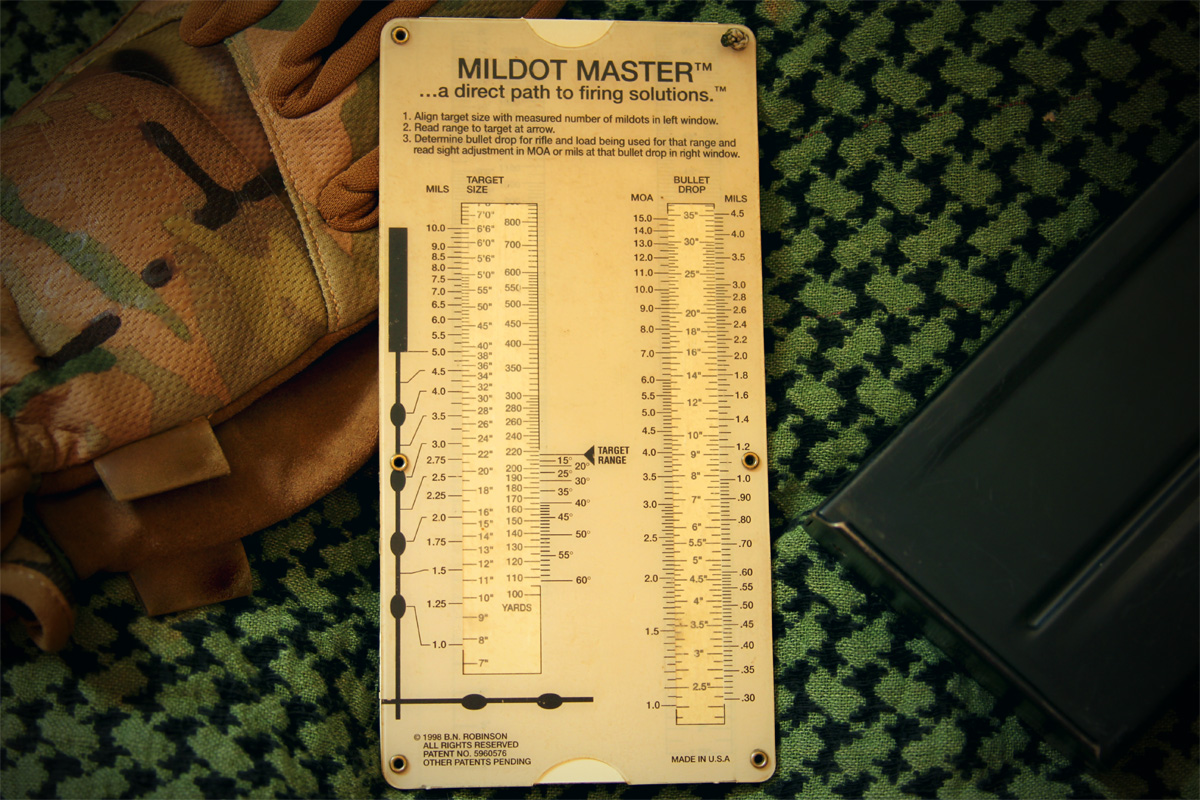 The Mildot Master has been issued to US forces for over a decade. Its simplicity and accuracy allow you to range long-distance targets without a calculator.