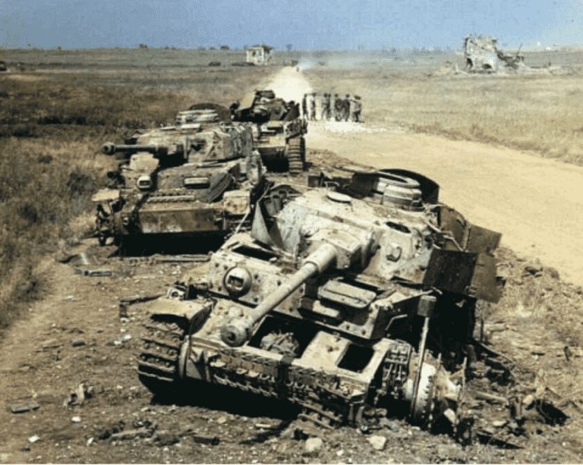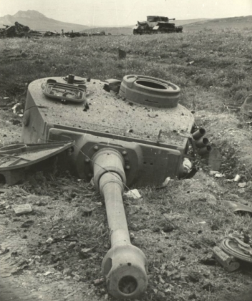 Major Carpenter was ultimately credited with immobilizing a total of fourteen German tanks along with a variety of lesser armored vehicles. Of these, six tanks were completely destroyed, having been penetrated from above through their relatively thin roof armor. Two of the tanks he destroyed were PzKpfw Mk VI Tiger I’s. Two of those immobilized were Mark V Panthers.