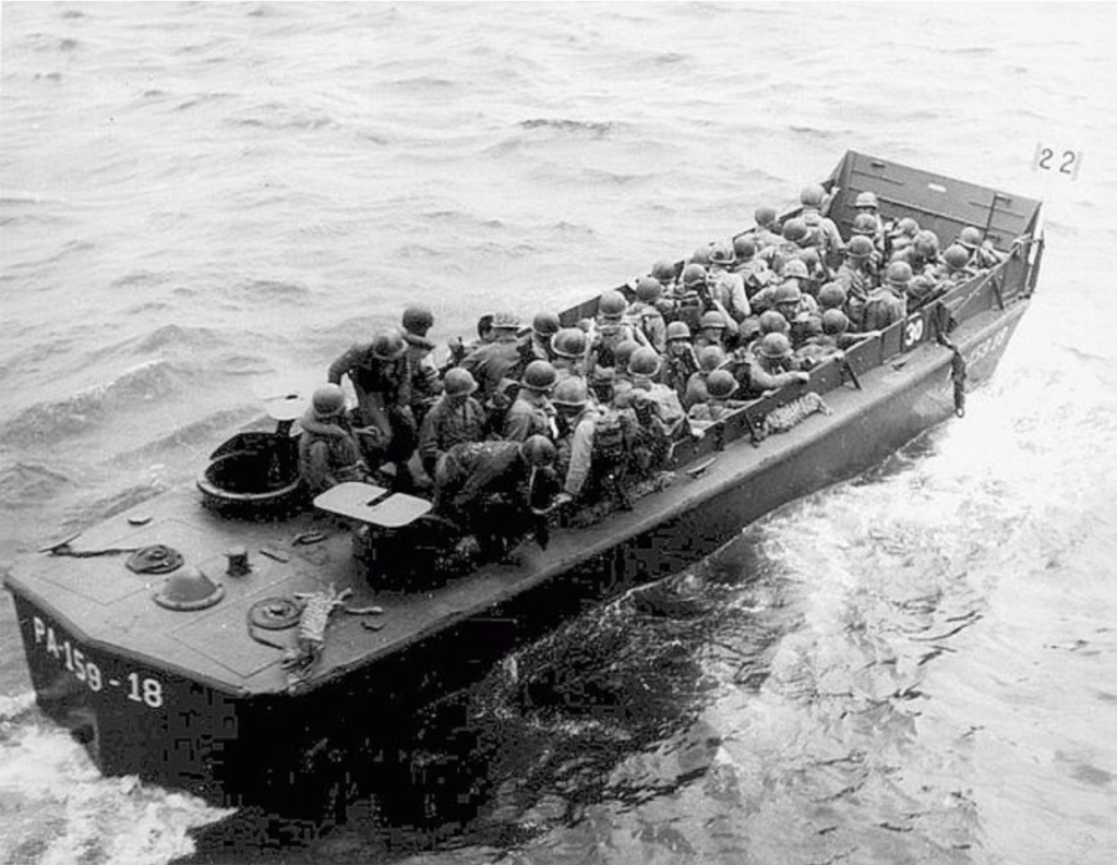 Dawson’s small reconnaissance element landed via a pair of LCP (Landing Craft Personnel) boats. The American version of this versatile craft was the legendary Higgins boat. These shallow-draft workhorses featured bow ramps that could drop to disgorge troops on a hostile beach. The experience of riding a Higgins boat into battle against an entrenched enemy would have been unimaginably horrible, but they were tried and proven.