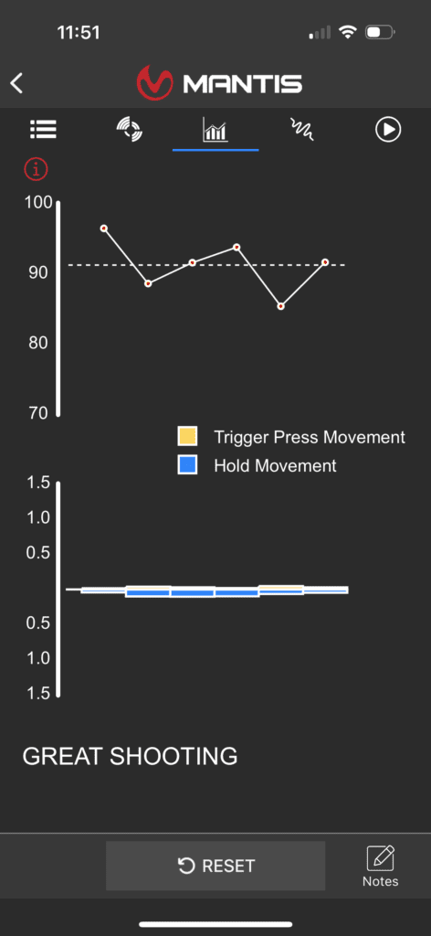You can connect the BlackbeardX via Bluetooth to any app that works with the MantisX. Mantis has the MantisX app with pistol/rifle drills, which is what I use. On this app, there are so many drills and customization options that you’d never be able to do them all. I have a few favorites that I use often, such as the Ready Up Drill, Dynamic Training, and Box Drill. These are all dynamic drills, which means you are focusing on speed, accuracy, and movement of the gun. Still, other drills allow you to single out one aspect of shooting, such as trigger pull consistency, to improve in a particular area.
