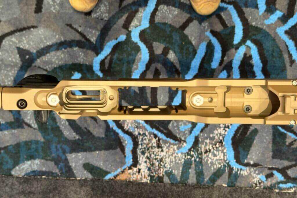 Night-hunting rifles live or die by mounting consistency. Because of that, MDT integrated a Type III hard-anodized aluminum NV bridge and ARCA rail. The system handles repeated clamping from thermal and night vision devices. More importantly, it resists flex and alignment shift.