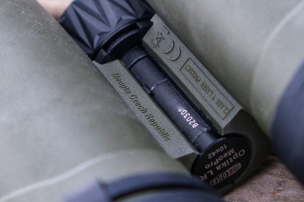 The Meopta Optika’s feature a magnesium housing for weight reduction. They are armored in textured rubber coating that feels great. They’re also waterproof.