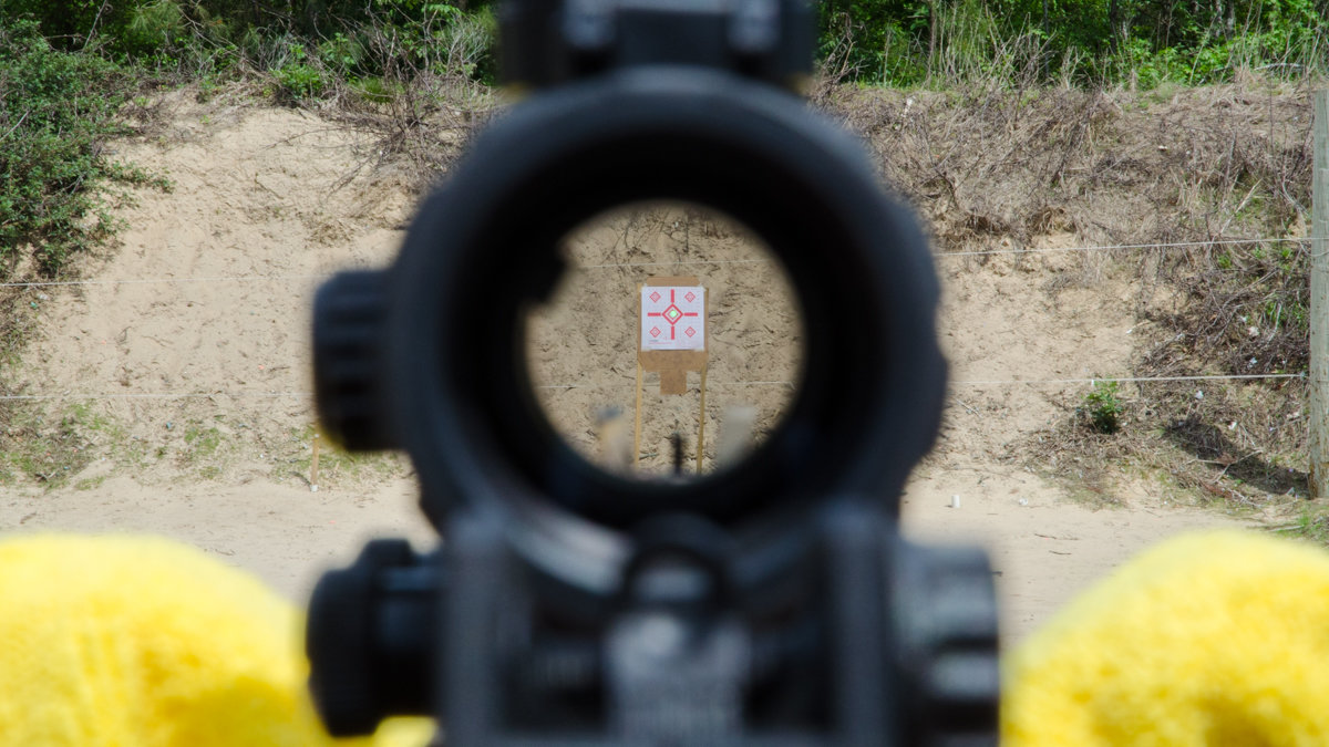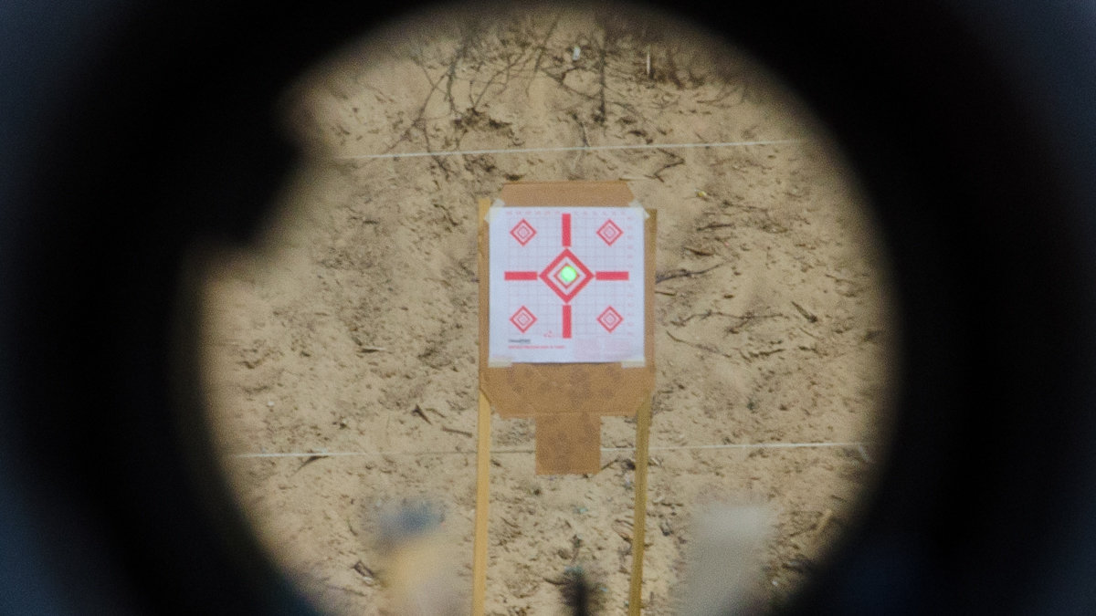 - The included UTG optic provided good visibility in bright sun with the green reticle against the red target.