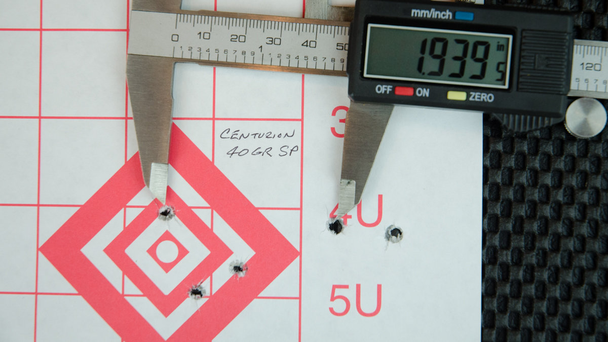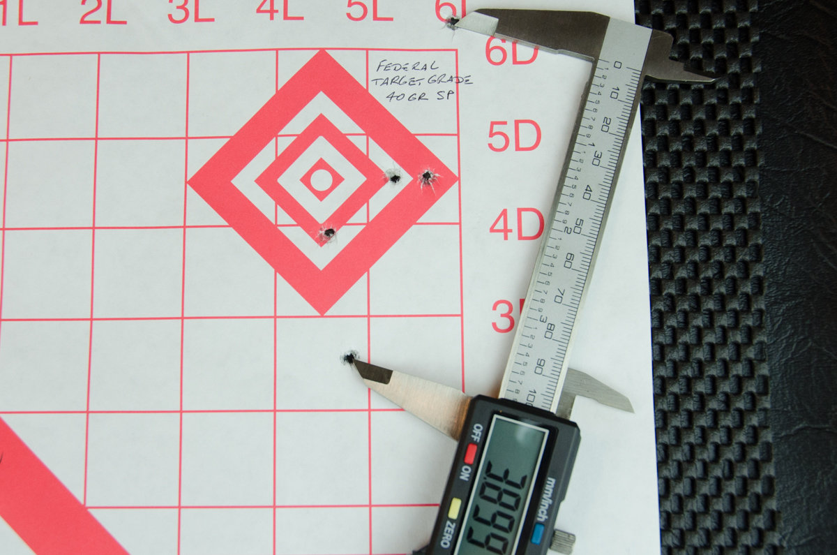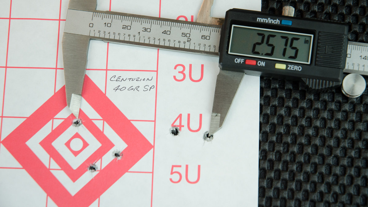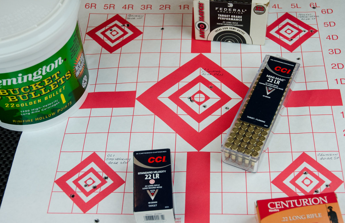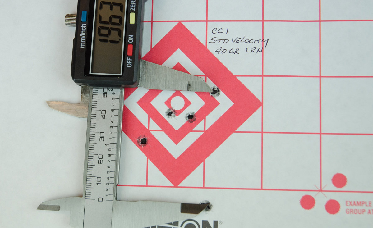 Several brands of ammo were tested as five-shot groups with the Mossberg 715P at 25 yards using a bench rest with a vise attachment. Results were adequate for a plinking gun, but not tight enough to be taken seriously. The best group was produced using CCI Mini-Mag, which yielded a 1.79” spread. Average of 5 groups, each a different ammo, was 2.573”.
