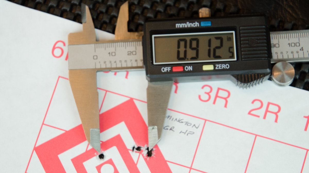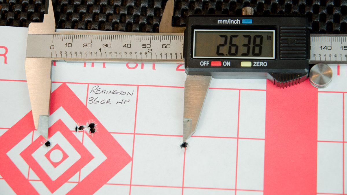 To me, this takes it out of serious consideration as a varmint gun, unless you are at close range. As a favorite teacher of mine used to do, I threw out the “worst score” hit and measured best four-out-of-five shot groups. When I did that, Remington edged out the CCI Mini-Mag by just a bit, and the average dropped to 1.554”, a marked improvement. So, if you want to blame the flyer in each group on me, my rest, the ammo, or cosmic forces, an inch and a half is not so bad. To be fair, I was using the green dot of the UTG optic at its brightest setting to compensate for the bright sunlight. This makes the dot itself over an inch in diameter against the 25-yard target. This increases the margin of shooter error.