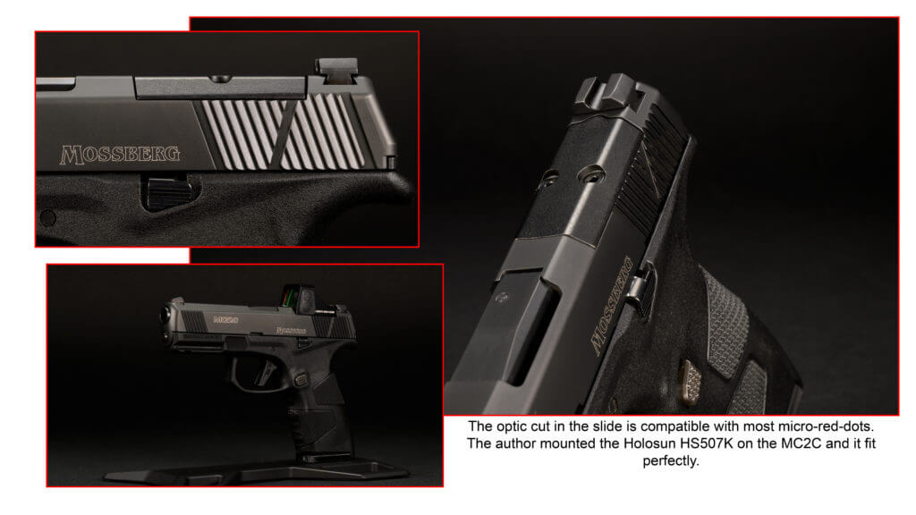 Sized a bit larger to make it a potential duty pistol, the MC2C is still very much within the realm of everyday concealed carry. If you’re interested in a red-dot sight on your carry gun then the MC2C belongs near the top of your list. The low-mount optic will be easier to conceal and carry, and the ability to co-witness with the stock sights is – for me – essential. Priced at a suggested $556.00, Mossberg is bringing serious value into this class of handgun and the buyer would be wise to give it a serious look.