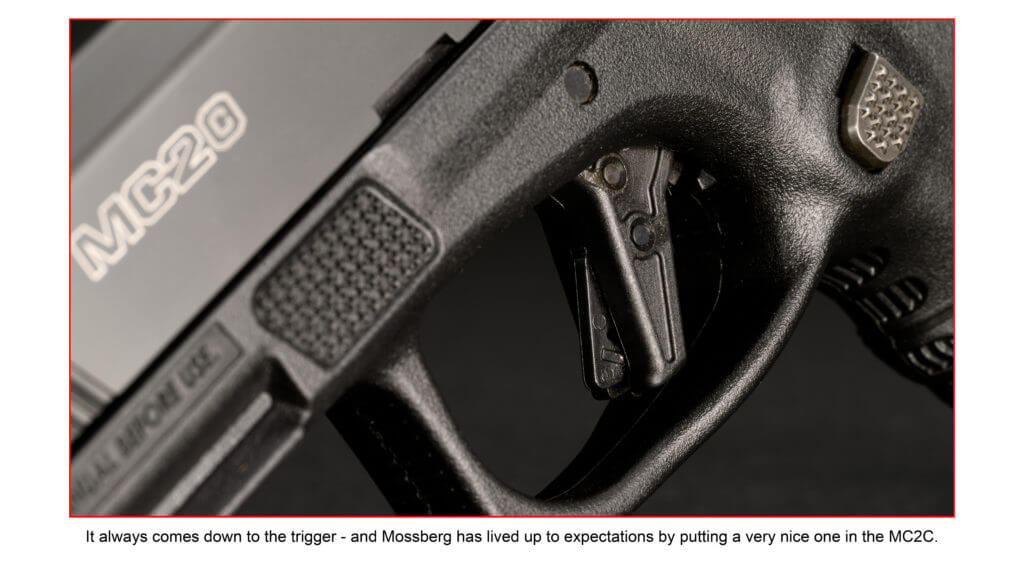 The Mossberg MC2C Optic-Ready handgun makes its mark in several ways in this very overcrowded market for thin 4” 9mm handguns. For starters, the name Mossberg – while for is most indicative of sporting shotguns – is a long-established brand that stands for quality. Putting that name on the slide means something. It means quality in the workmanship and materials. It means innovation and high standards. Holding the MC2C, and especially shooting it – you become aware of these qualities. Making an optic-ready pistol is certainly no longer an innovation, but ensuring that it co-witnesses with low-mount sights is worthy of extra credit. The trigger is better than average by several orders of magnitude.