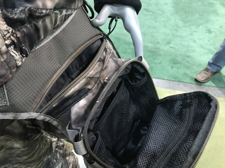The Dieback features a zippered rear pocket large enough for a full-sized handgun or mid-sized binoculars and a larger main pocket with three mesh dividers. These dividers help organize smaller gear items like a water bottle, animal caller, multi-tool, flashlight and other hiking and hunting essentials.