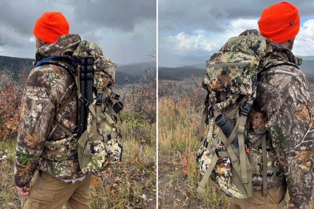 The side pockets are roomy enough to hold water bottles, spotting scopes, or tripods, and they’re easily accessed when you need them. These pockets are a big advantage when you’re moving quickly and don’t want to waste time digging through the main compartment. They also feature elastic drawstrings, ensuring that your gear stays secure even when you’re moving fast.