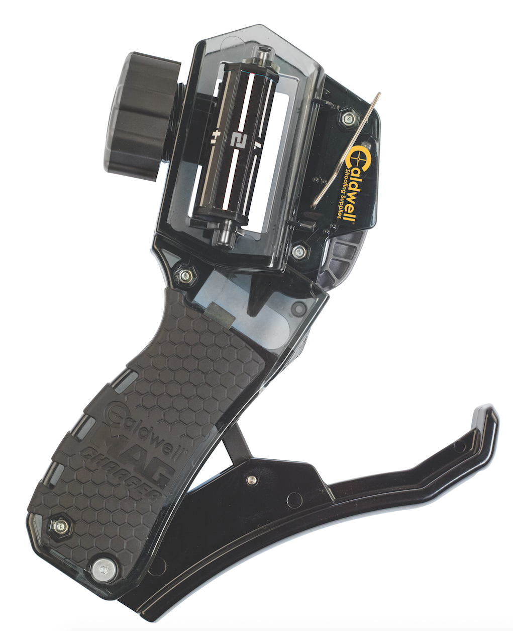 Once you have set it up for your magazine the lock knob keeps virtually any size magazine secure. Just drop in a round and squeeze the lever: It is that simple. The Mag Charger is made of polycarbonate construction with an ergonomic die cast aluminum handle for easy use and “no flex” operation. MSRP: $47.99.
