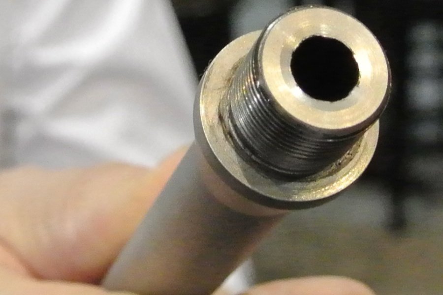 With the cap removed you can see that they machined a shoulder behind the threads to help support a suppressor.