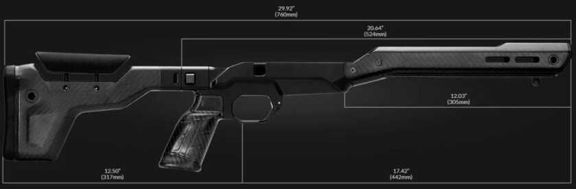 Based off the Model 21 Action, the CCH features a 24” (or 26” depending on caliber) Sendero PROOF Research carbon fiber-wrapped barrel sitting in an MDT HNT26 chassis system.