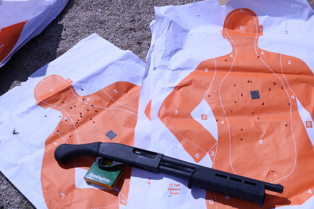 So, all that being said, what is the point of this gun? Is it the most useful gun? No. It is not. But it is cool. Like a Desert Eagle, a two barrel 1911, and a Smith and Wesson 500, it is not the most practical thing around. But the price is right. Those other toys cost thousands. The TAC-14 has an MSRP of $443. It is fun, and for certain defensive situations, it is useful. The 14-inch barrel throws a pattern that surprised me, opening up to almost a foot square by 7 meters. Even the 5-meter pattern was respectable.