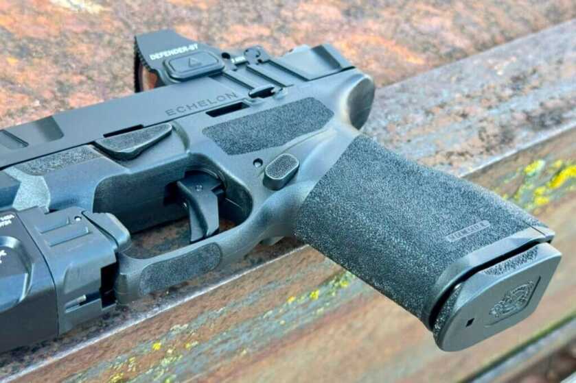The Echelon 4.0C’s slide features deep front and rear serrations that make it easy to grip and manipulate. The rear of the slide has a slight flare, which adds surface area, somewhat similar to the design of an AR-15 charging handle. This provides extra grip for racking the slide without slipping off.