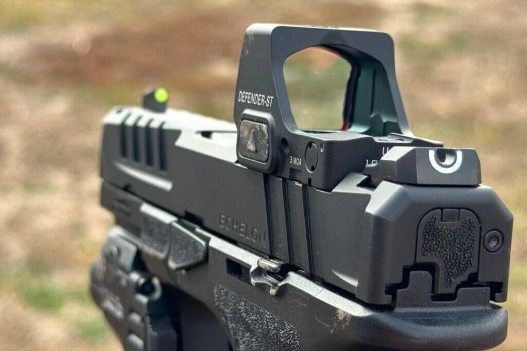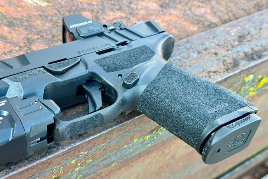 The Echelon 4.0C’s slide features deep front and rear serrations that make it easy to grip and manipulate. The rear of the slide has a slight flare, which adds surface area, somewhat similar to the design of an AR-15 charging handle. This provides extra grip for racking the slide without slipping off.