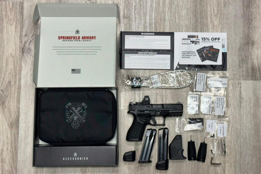A double-zipper case is included with each Springfield Armory handgun. The soft-sided shell ensures the firearm and mounted accessories are protected during transportation, while an interior pouch can hold an additional magazine. It also comes with three interchangeable grip backstraps, the VIS Optics kit which includes screws to mount most red dots on the market, a gun lock, an owner’s manual, and a magazine loader. For the duration of this review, I ran the Vortex Defender-ST and Streamlight TLR-7 HL-X to set up this pistol how it was designed to be ran.