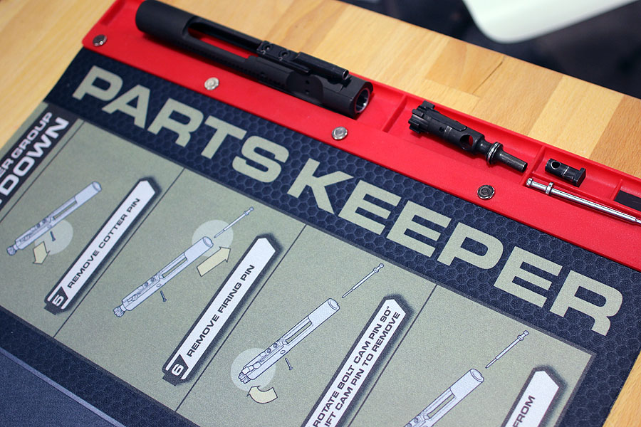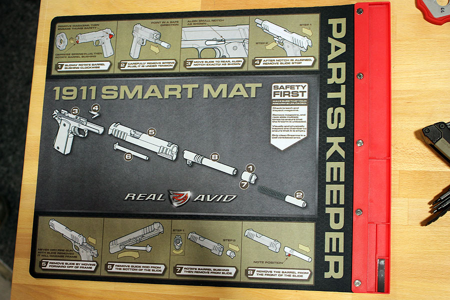 My favorite from this year’s Real Avid SHOT display was a new style of cleaning mat–the Smart Mats. They’ve taken a blown up diagram of each type of gun and printed assembly/disassembly instructions on a well-padded piece of neoprene. At one edge is a plastic parts tray that serves as a great place to put loose bits and parts (it even has a magnet), and a convenient spine to roll the mat up on.