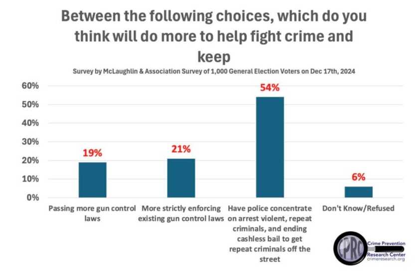 A new survey from McLaughlin & Associates, commissioned by the Crime Prevention Research Center (CPRC), reveals something the mainstream media won’t highlight: most Americans don’t believe gun control reduces crime.