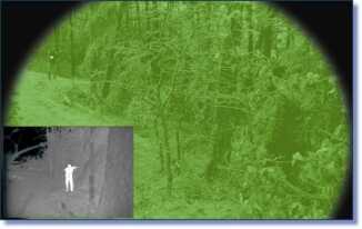 | An enemy target in both thermal and standard night vision. |